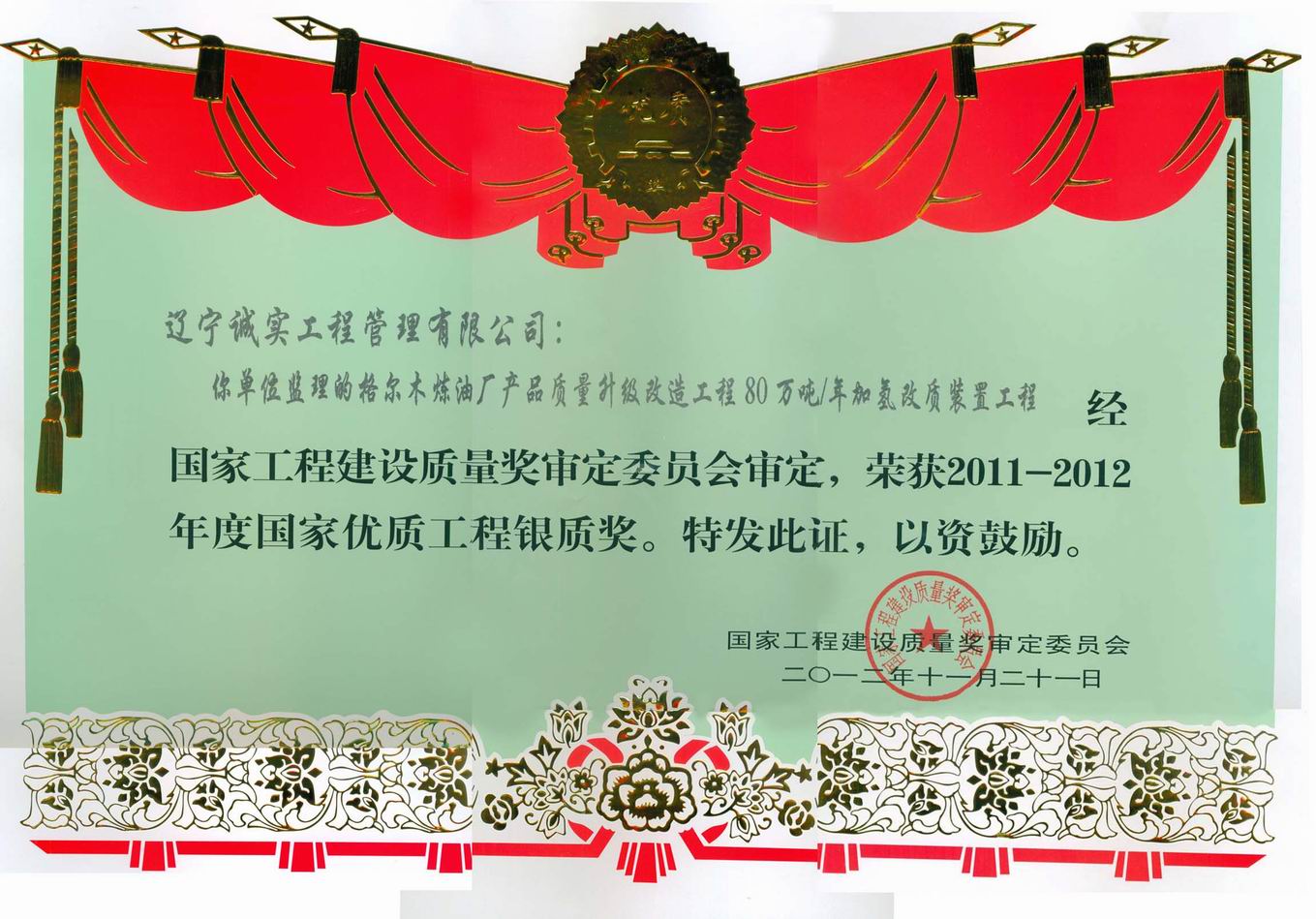 2011-2012年國家優質工程銀質獎(格爾木煉油廠)