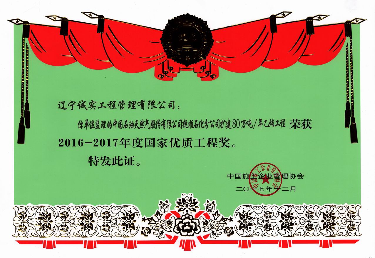 2016-2017年國家優(yōu)質(zhì)工程獎(撫順石化擴建)