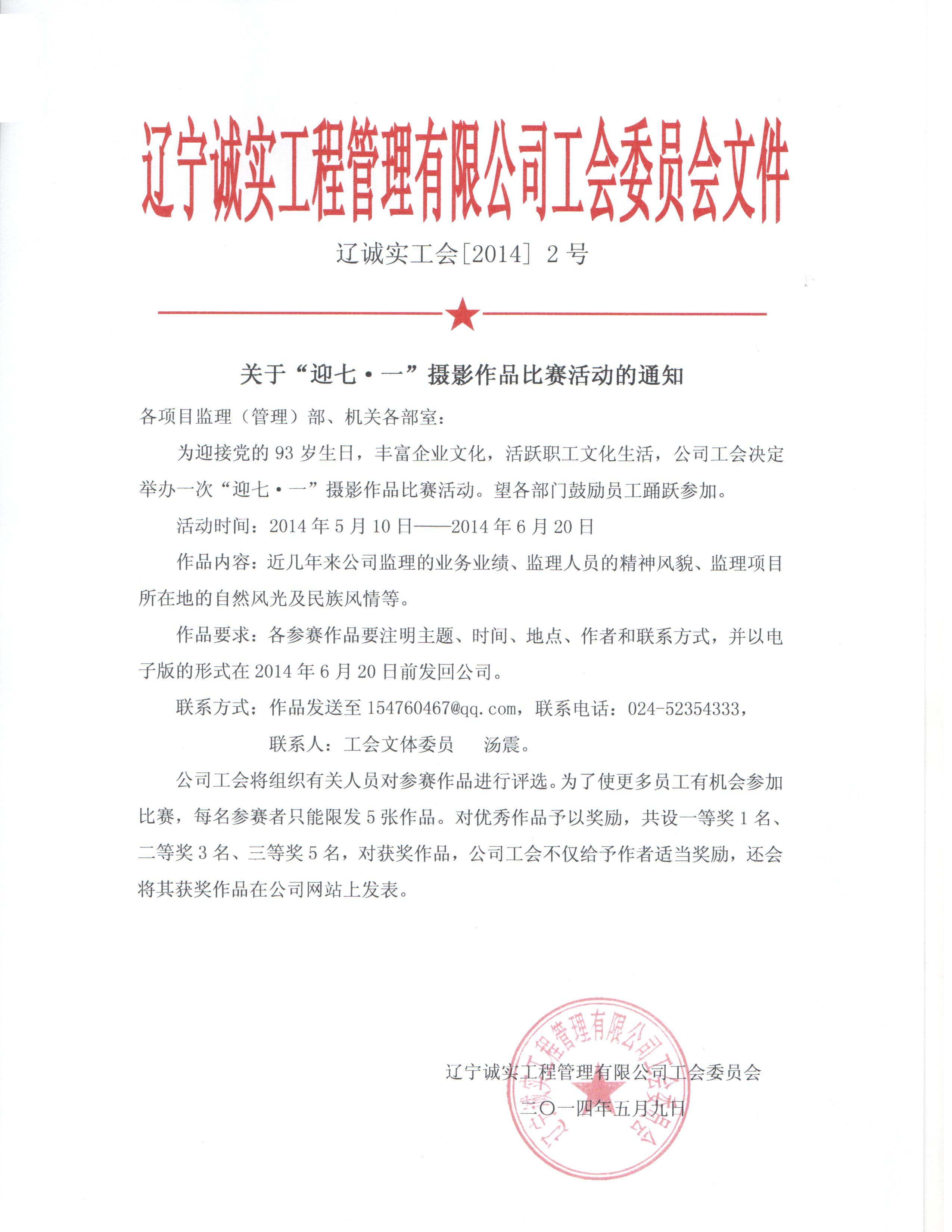 為迎接黨的93歲生日,工會決定舉辦“迎七一”攝影作品比賽活動