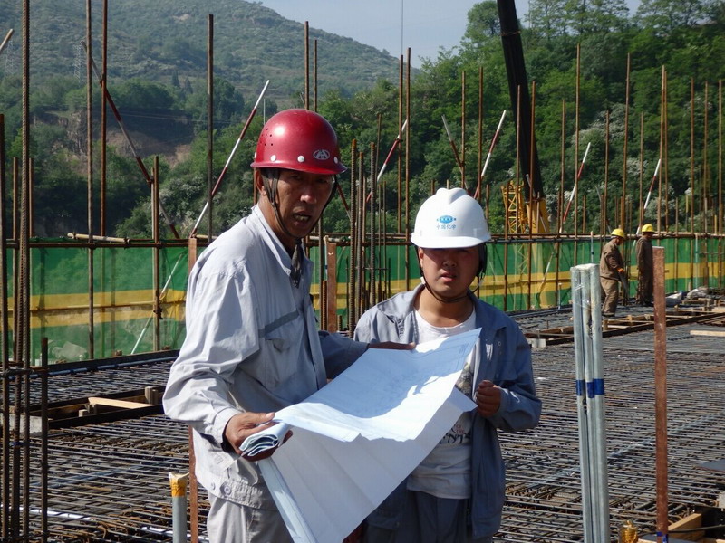 顧玉林同志現(xiàn)場檢查1600聚合主框架鋼筋綁扎情況