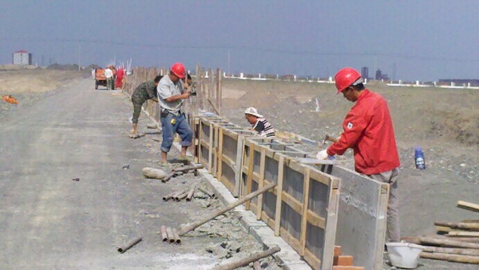 南側圍墻在支模